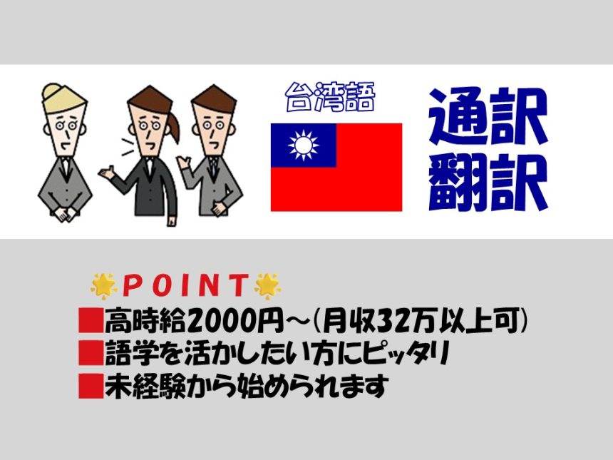 <通訳> 働かれている方に対しての通訳のお仕事です♪ 台湾語のスキルが役立ちます!✨ 台湾語の話せる方はぜひ!