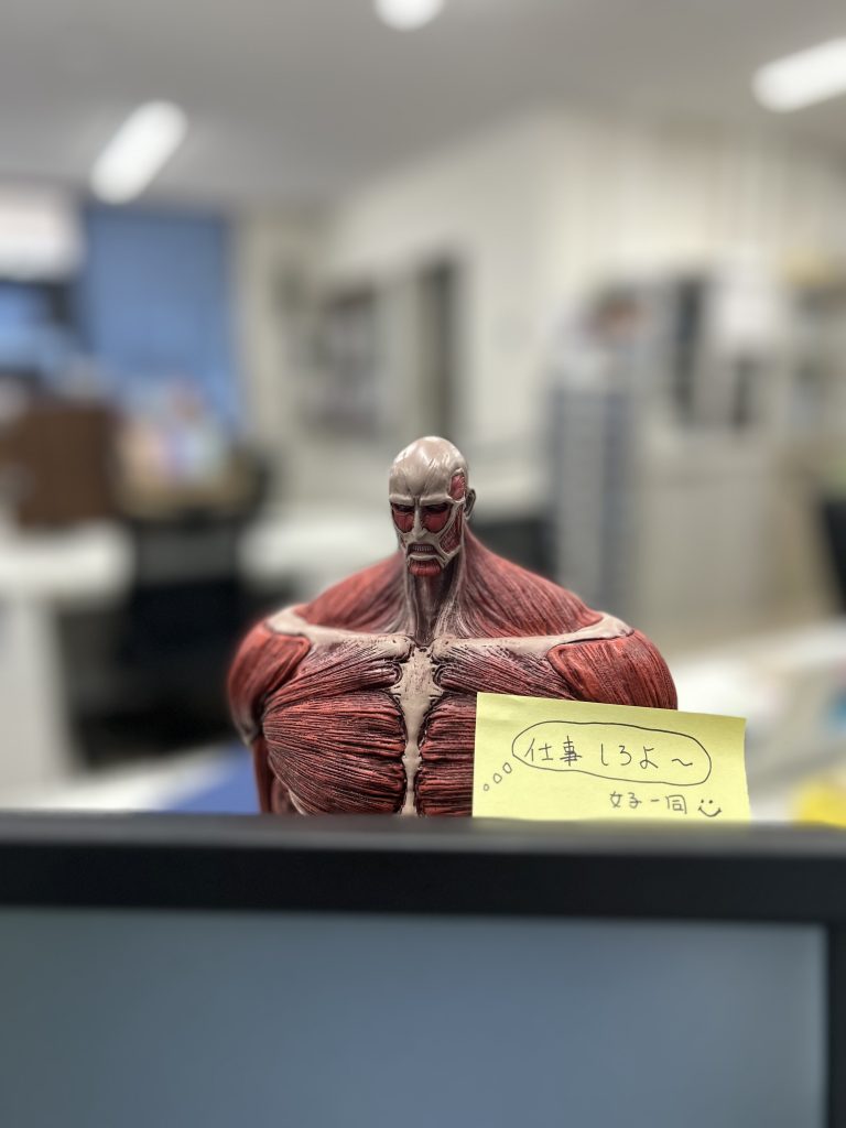 それも、ハモじいが座るデスクの上に、、、パソコンの奥から覗くように、、、不気味に此方を見ている。。。